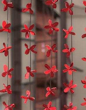 The flowers are hand-cut and strung on a cord.The flowers of the threads are in 3 sizes: approximate diameter: