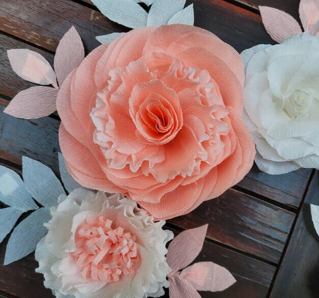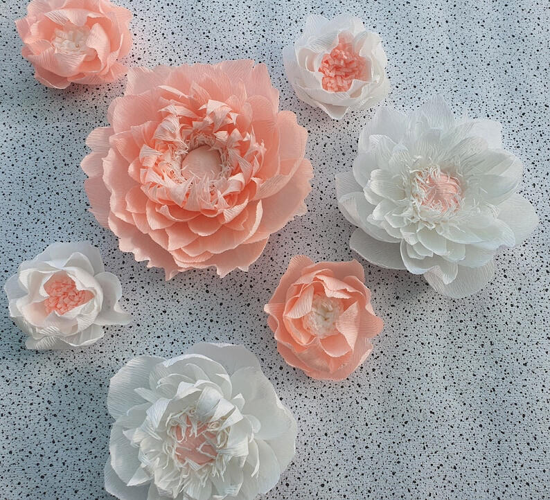 Elevate your event's ambiance with our Peach and White Handcrafted Paper Flowers, perfect for adding a touch of sophistication to weddings, celebrations, and corporate events.These stunning, oversized paper blooms are also ideal for home and business decor, offering a stylish, maintenance-free alternative to traditional floristry.With their intricate craftsmanship and versatile display options, our paper flowers are a popular choice for those seeking an artistic and sustainable decorative solution. Order now for an unforgettable decor experience!Flower sizes: