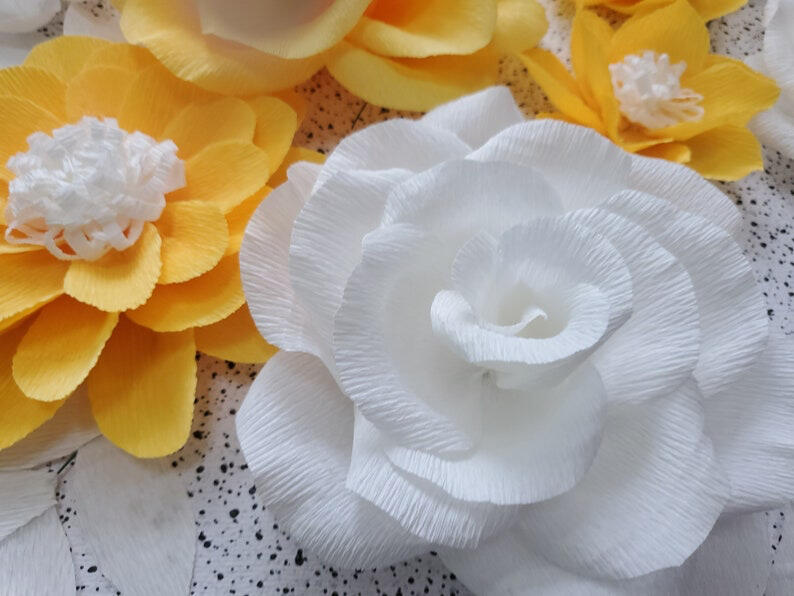 Embrace the eternal bloom of our Exquisite Handcrafted Paper Flower Bouquet. Perfectly crafted to enhance your home decor or to present as a thoughtful gift, these allergy-friendly, crepe paper flowers bring a unique, artistic touch to any setting. Ideal for weddings, anniversaries, or as a charming 'just because' gift, our paper flowers are as diverse in use as they are in beauty. Each arrangement is meticulously made by hand, offering a personalized experience with every petal. Choose from our range of vibrant colors and realistic designs to capture the essence of a blooming garden that lasts a lifetime.Handmade