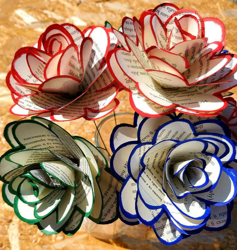 Book Paper Flowers suitable for Vintage Wedding Decor or home decoration