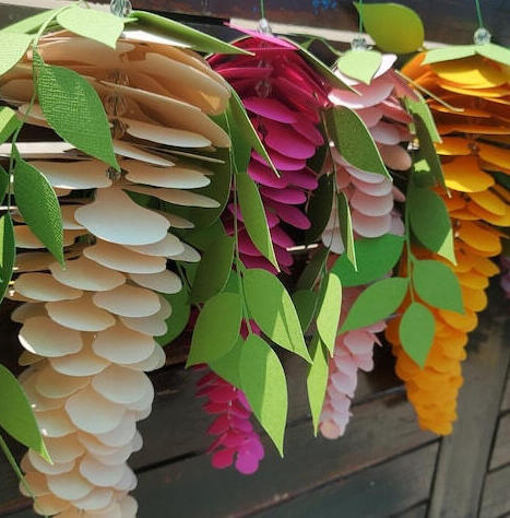 Add a splash of color to your celebrations with our 'Colorful Paper Wisteria Garland'. Perfectly handcrafted to mimic the enchanting beauty of wisteria blooms, these paper beauties are a favorite for wedding decorations, garden parties, and spring-themed events.