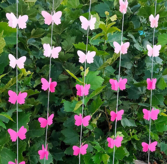 Adorn your celebrations and home with our Whimsical Butterfly Paper Garlands. Crafted for versatility, these enchanting garlands are ideal for creating a festive atmosphere at weddings, brightening up nurseries, or adding a touch of magic to baby showers and birthday parties. Our lightweight, 3D design paper butterflies bring a lively flutter of color to any space, ensuring a memorable decor experience."HandmadeThe set consist 10 strands each 90cm