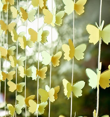 Capture the essence of spring and summer with our Vibrant Yellow & Purple Butterfly Garlands. Ideal for garden parties, seasonal events, and adding a colorful dimension to children's rooms, these hanging butterfly decorations will flutter gracefully, simulating a natural garden atmosphere. Their lively hues are perfect for creating a festive and inviting ambiance, making them a hit for birthdays and educational settings as well. Easy to set up and enchantingly beautiful, these paper butterflies promise to lift spirits and enhance any space with a touch of whimsy. Bring the outdoors in and celebrate the seasons with these charming decorations.Handmade