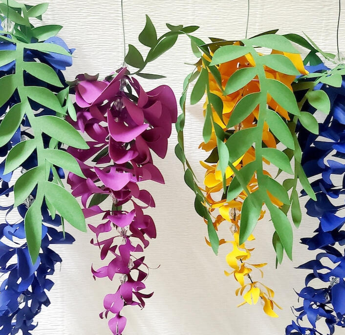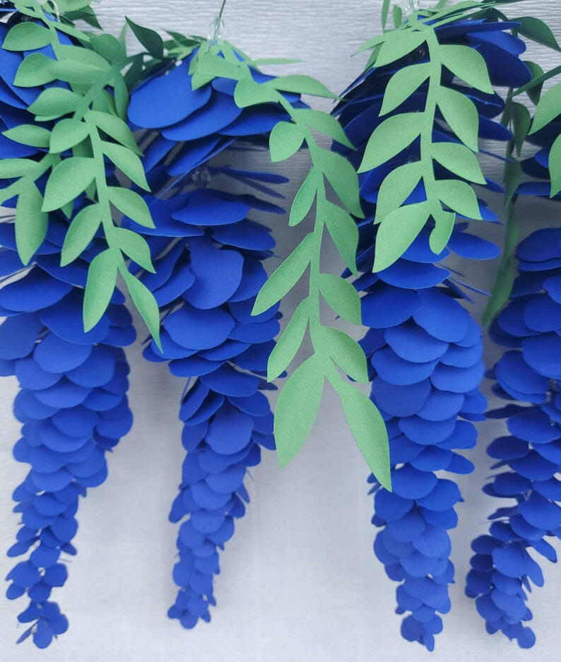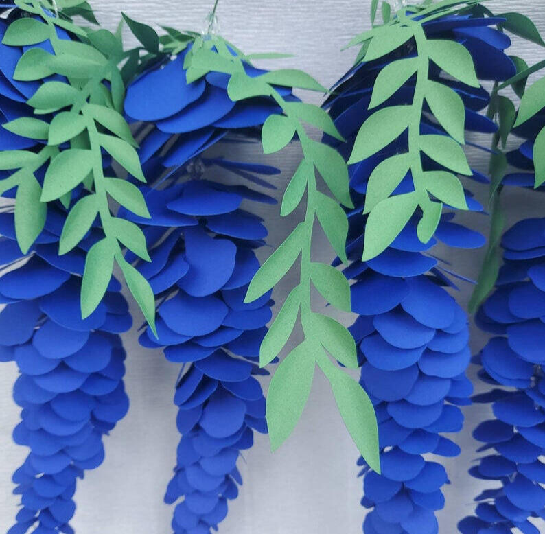 Durable and delightfully detailed, these wisterias capture the essence of spring and joy in every petal. Looking for a custom look? Personalize your garland with specific color requests to match your decor vision. Enhance your event or home with these charming paper wisterias today!Handmade