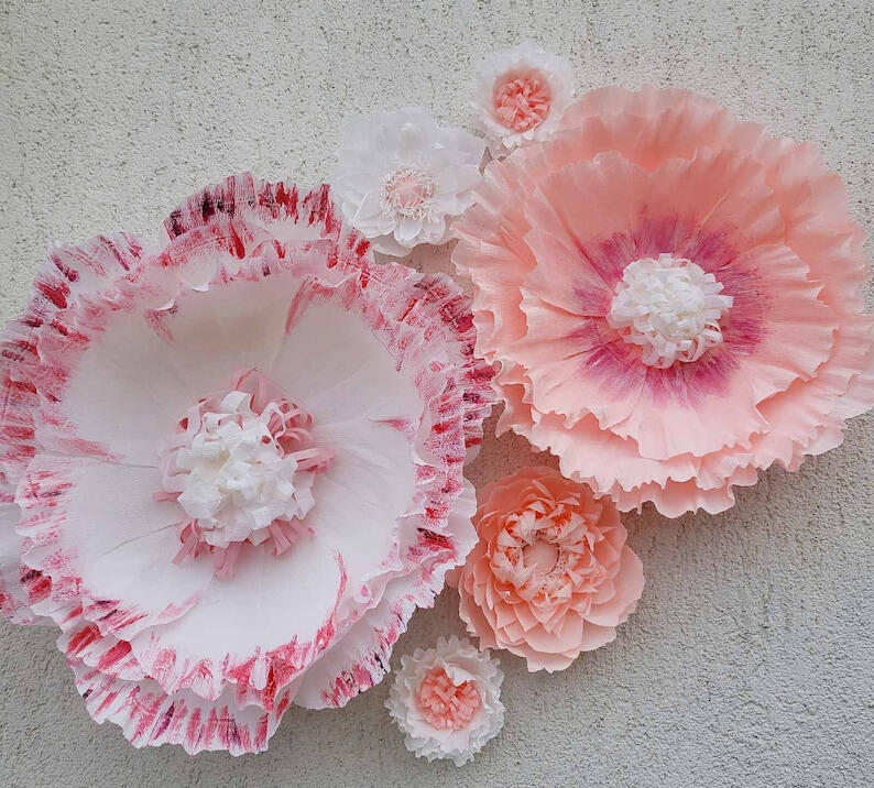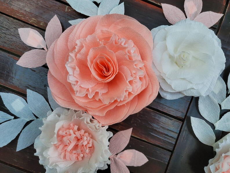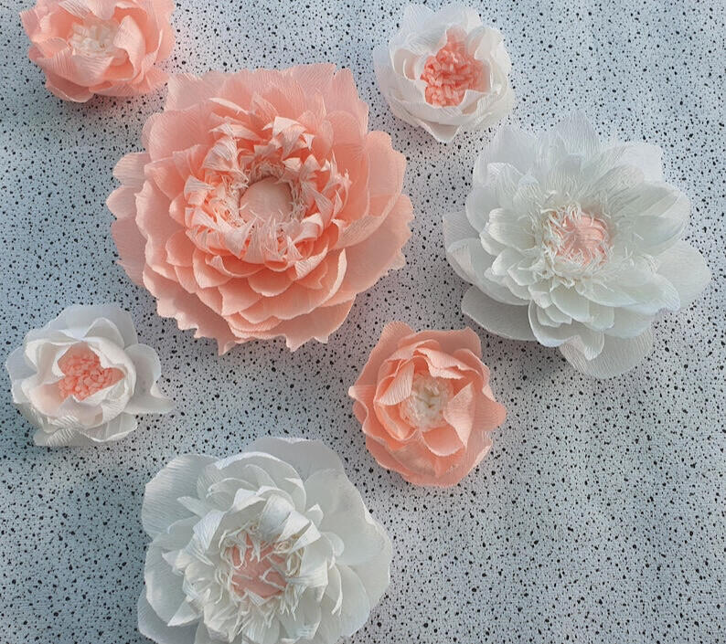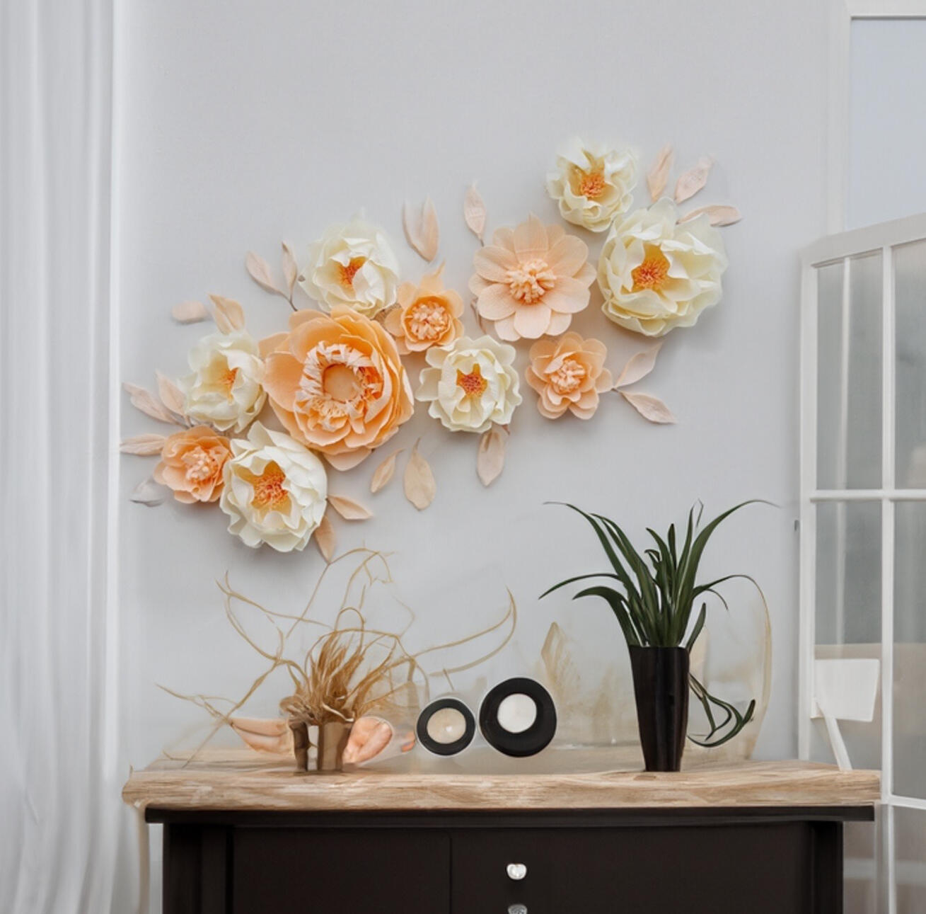 Elevate your event's ambiance with our Peach and White Handcrafted Paper Flowers, perfect for adding a touch of sophistication to weddings, celebrations, and corporate events.These stunning, oversized paper blooms are also ideal for home and business decor, offering a stylish, maintenance-free alternative to traditional floristry.With their intricate craftsmanship and versatile display options, our paper flowers are a popular choice for those seeking an artistic and sustainable decorative solution. Order now for an unforgettable decor experience!Flower sizes: