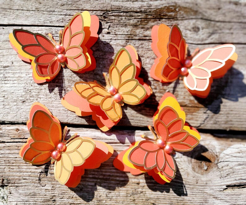 Elevate your event's decor with our exquisite Gold and Black Paper Butterflies. Perfect for adding a sophisticated touch to weddings, themed parties, or simply to beautify your home, these butterflies create a whimsical yet elegant atmosphere. Crafted with intricate detail, each butterfly's wings boast a stunning gold and black design, ideal for creating memorable backdrops or table centerpieces. These versatile decorations are easy to set up and can transform any space into a magical setting. Shop now and let these charming paper butterflies bring your decor to life!Set of 5 two-layered butterflies of different sizes and models.1 large butterfly with a height of 7 otherwise (18 cm)