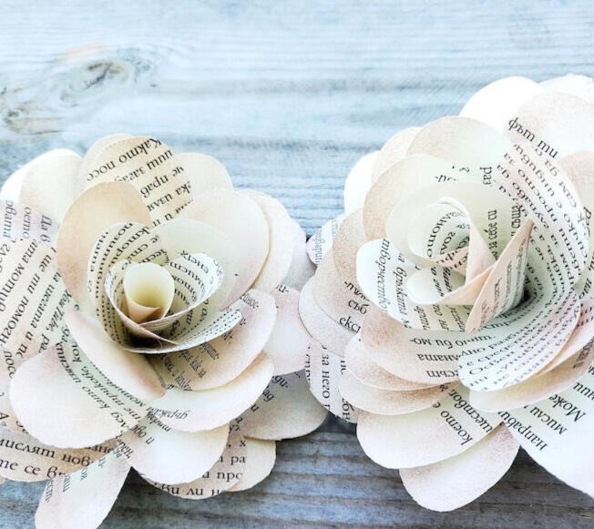Book Paper Flowers suitable for Vintage Wedding Decor or home decoration