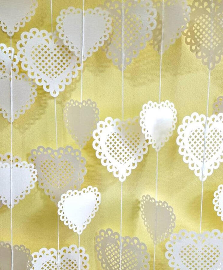 paper lanterns, garlands, wall hangings, table centerpieces, and customized decor