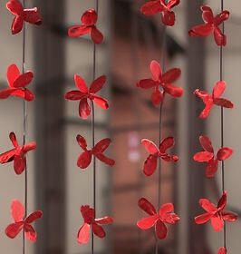 The flowers are hand-cut and strung on a cord.The flowers of the threads are in 3 sizes: approximate diameter: